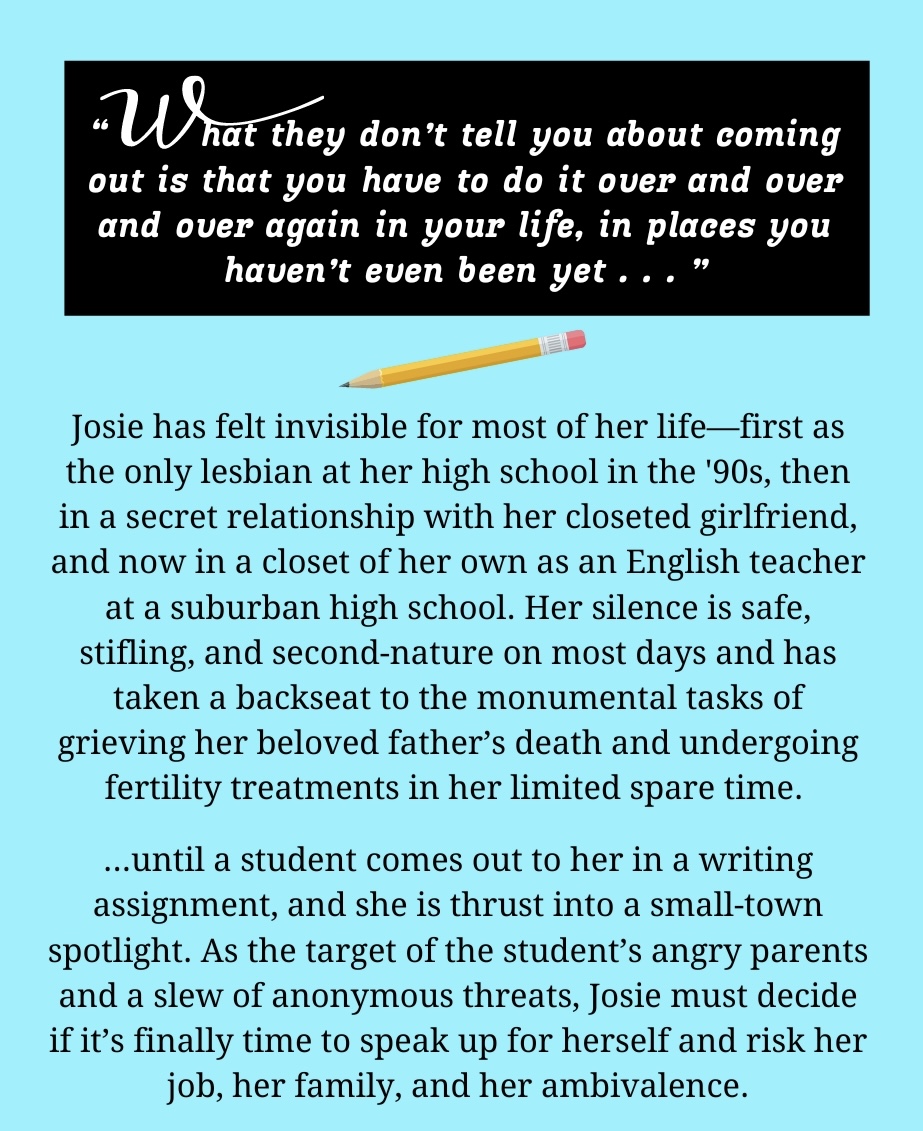So many LGBTQ teachers around the country (and the world) have been forced into silence. Check out my book to see if Josie decides to do the same!